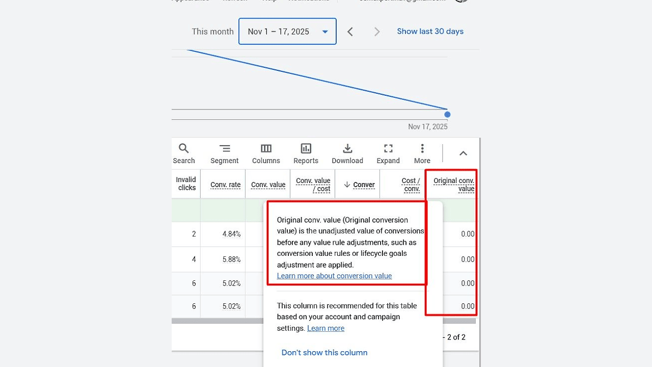 In November 2025, a new metric started appearing in accounts: Original Conversion Value.