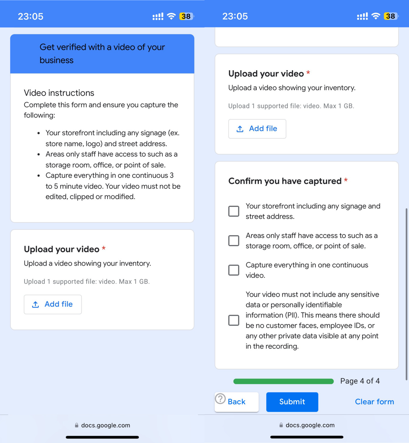 Google requires merchants to film an uninterrupted, unedited video showing their business in real time. This video must include the exterior of your premises with visible signage, your business name, and the physical address.